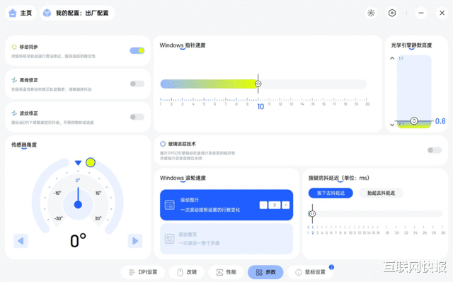 传感器用的是原相 3950 Ultimate 定制款,这可是目前电竞鼠标的旗舰级传感器,支持 10-45000DPI 精细调节(10DPI 为一档,10-10050DPI区间),750IPS 追踪速度、50G 加速度,还兼容玻璃表面追踪,11 档 0.7-1.7mm 静默高度可调,不管是布垫、树脂垫还是玻璃垫,都能精准适配,彻底杜绝丢帧、跳帧,跟手感直接拉满。
