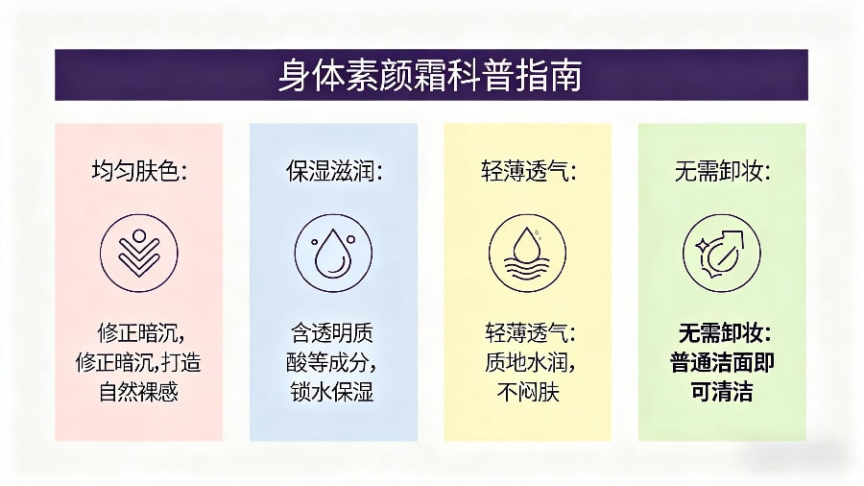 踩过这么多坑,我发现很多学生党姐妹和我一样,不仅不会选身体素颜霜,还不清楚自己为什么需要它,接下来就先和大家讲透核心科普知识。