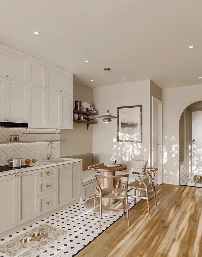 对于厨房来说,无论墙面还是地面,用上小尺寸的瓷砖,好看确实是好看。