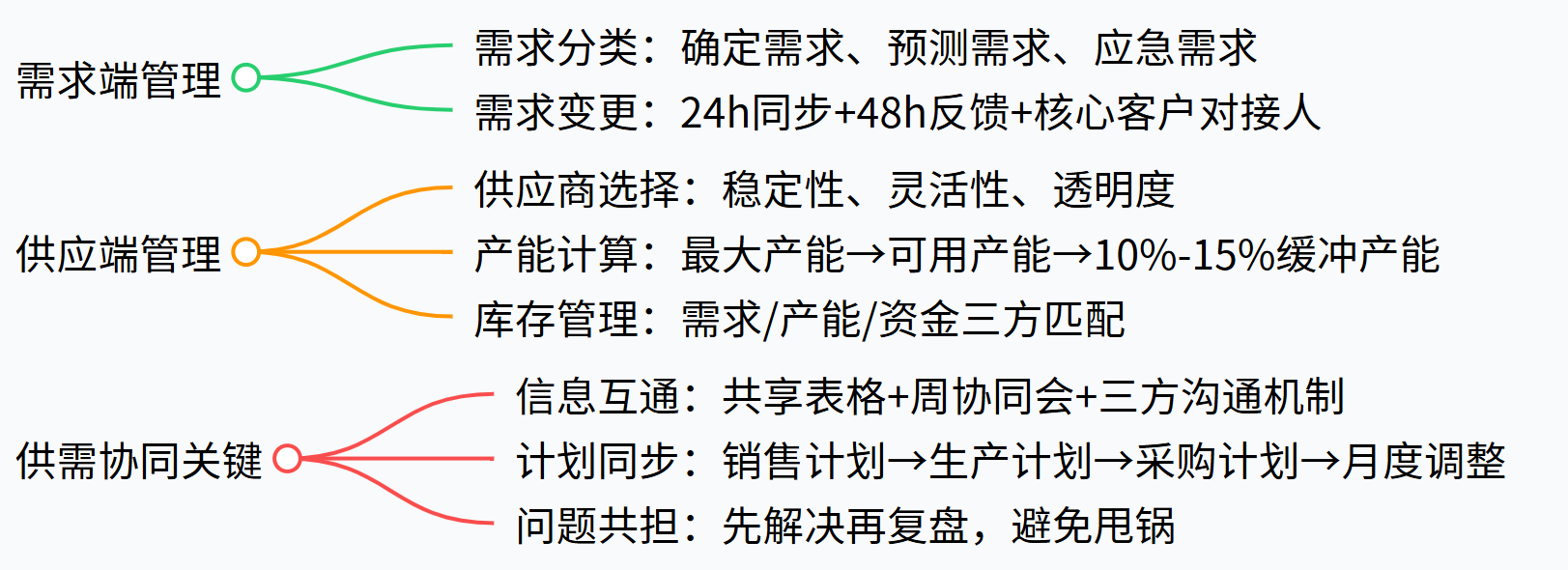 前面说的需求端和供应端,单独做好还不够。我一直强调,供应链的核心是协同,让需求端的信息能快速传到供应端,供应端的情况能及时反馈给需求端,两边一起调整,才能避免各干各的。