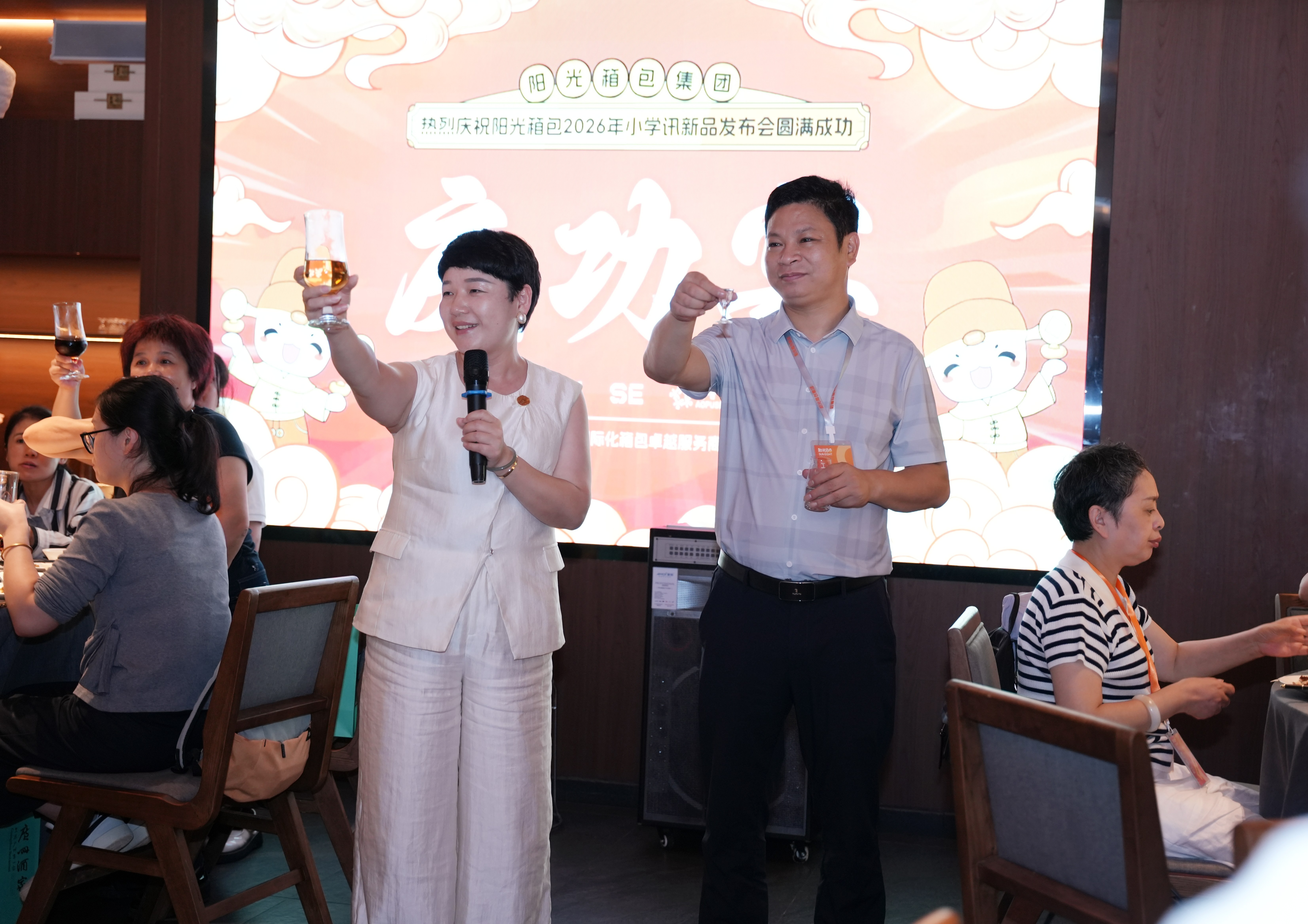 活动的最后,庆功晚宴如期举行。晚宴现场布置精美,灯光璀璨。大家欢聚一堂,品尝着美味佳肴,畅谈着此次订购会的收获与感悟,分享着合作的喜悦与未来的期许。在全体举杯的欢呼与祝福声中,阳光箱包集团 2026 年春季订购会暨新品发布会圆满落幕。