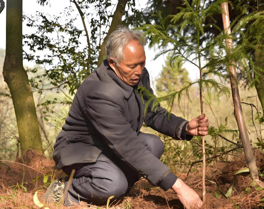 我有些不理解,问他为啥不休息,家里现在也没什么负担。他却憨笑着说道:正是因为现在没负担了,没后顾之忧了,他才会到山上种树。