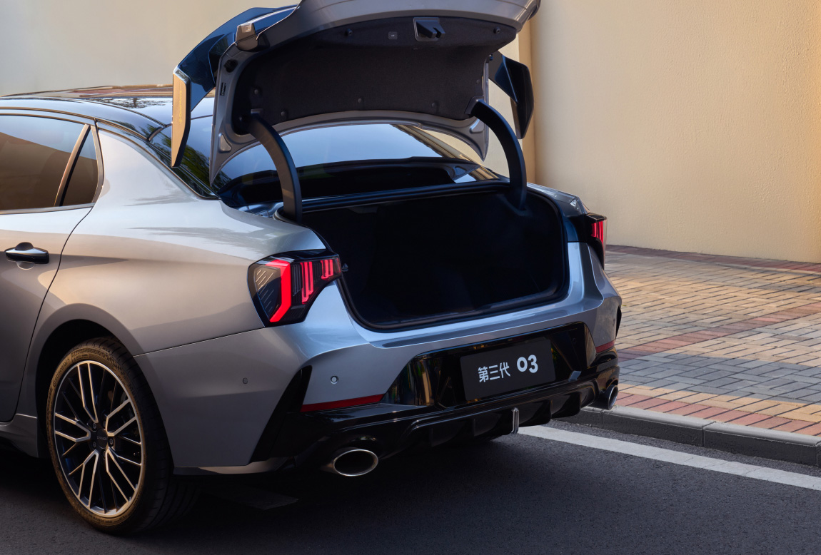 首先,领克03性能家族的外观设计实现了视觉张力与实用价值的双优融合,战机既视感的猎风前脸极具辨识度,低趴车身搭配斜线布局的飞翼格栅,如同层层叠叠的机械羽翼般蓄势待发,专属数字标识搭配开门即现的“03”字样,让每一次出行都充满专属仪式感。标志性的碳纤维驭风尾翼不只是吸睛的视觉亮点,更具备实打实的空气动力学效用,能够有效增强高速行驶时的空气下压力,显著提升车辆行驶稳定性,无论是日常城市通勤还是春运高速返乡,都能为驾驶者带来满满的信心与驾控乐趣。再搭配智能电动尾门,可实现自动平稳开合,后备箱宽裕容积搭配便捷操作,即便是双手拎满年货礼品,也无需手动开关门,尽显精致与便捷。