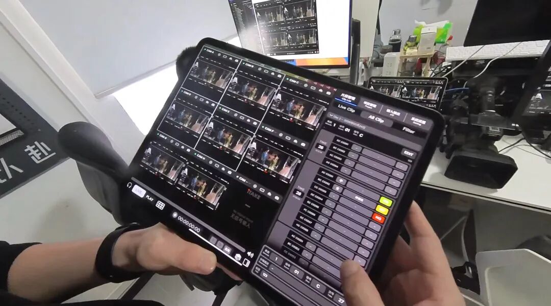 所以他们推动研发了将监看、回放与场记板充分整合的iTAKE系统,中文操作、界面简洁,一台电子设备可同时监控9个摄像机画面,让任何人“培训半天就能操作”。