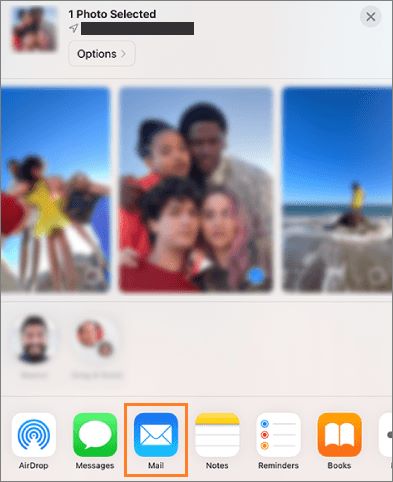 步骤 2. 点击“分享”图标,然后选择“邮件”。