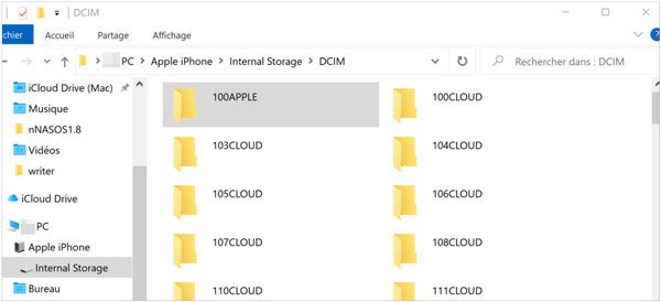 步骤 2. 打开文件资源管理器,导航至“iPhone”>“内部存储”>“DCIM”文件夹。