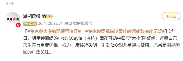 Cayla的经历是一个积极的警示,提醒广大家长应高度重视孩子的早期视力筛查。特此呼吁:即使孩子未表现出明显视物困难,也应定期进行专业的眼科检查。尤其对于存在“大小眼”、“眯眼视物”、“歪头看东西”或家族有视力问题史的儿童,更应尽早评估,避免错过最佳干预期,为孩子守护一个清晰光明的未来。#专家称大多数弱视可治好#,#专家称弱视错过最佳时期或致治疗无望#