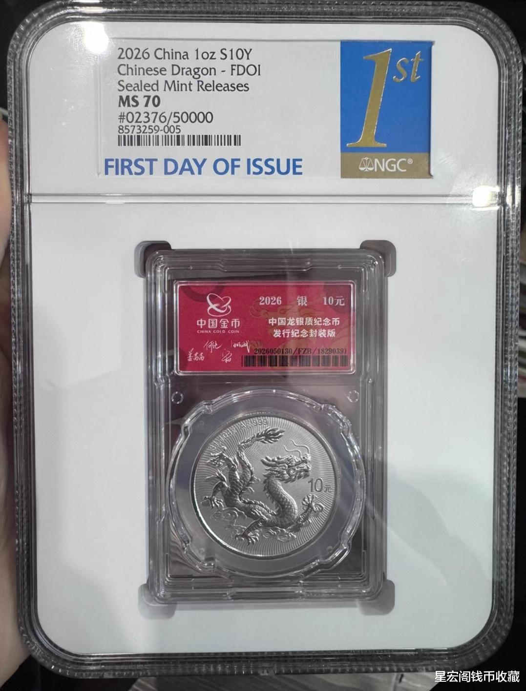 2026版中国龙银币最近也没有什么新品种可以玩,但是2026版中国龙银币封装纪念版NGC评级的市场上的货源也陆续增多,不过价格来看还是非常的高, NGC首日评级的2026版中国龙银币封装纪念版,目前市场行情都要在3500起。部分证书号码为靓号品种价格更高,甚至有些靓号市场行情超过1万以上。