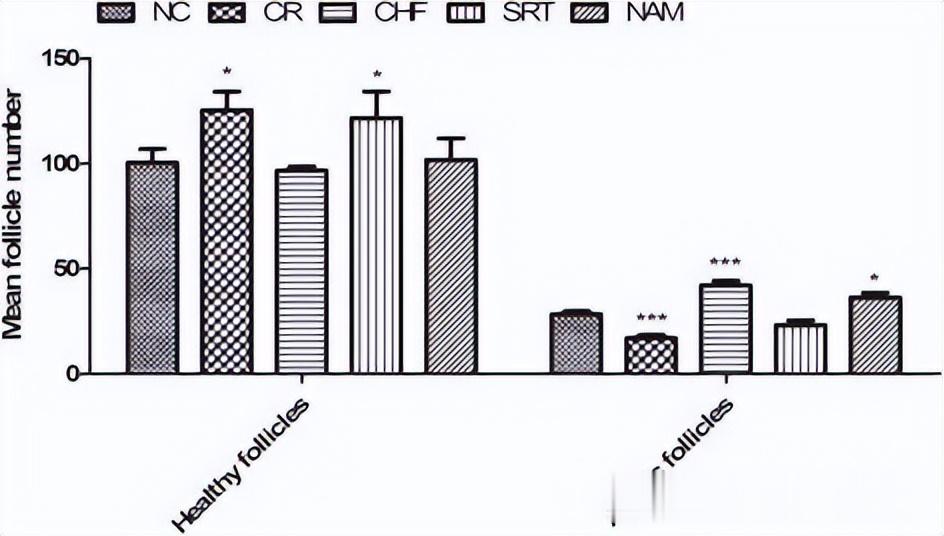 研究者认为这说明在这个试验条件下,卵巢的内分泌功能,可能不是受损的主要方面。