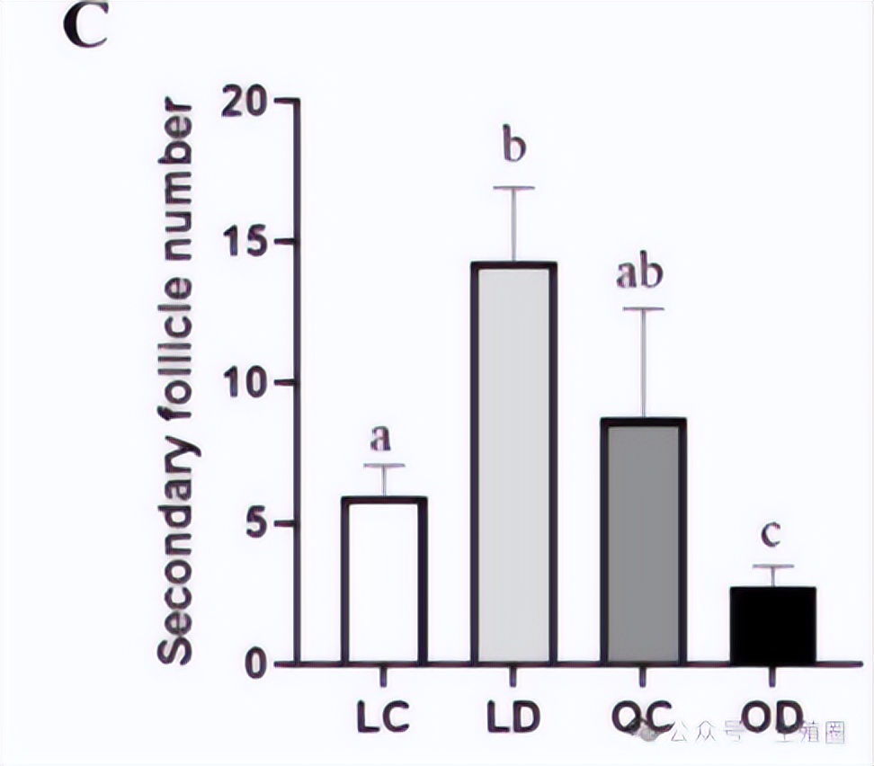 我们再来看发育中的次级卵泡的变化,这里出现了完全相反的结果。