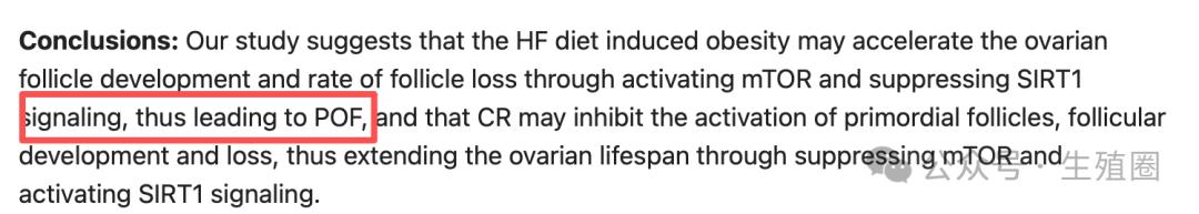 这直观说明,什么都不做,只是高脂饮食诱导的肥胖就可以加速卵巢和卵泡的流失率,从而导致卵巢功能衰竭,你没看错,研究结论就是卵巢功能衰竭。