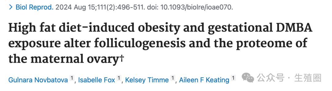 High fat diet-induced obesity and gestational DMBA exposure alter folliculogenesis and the proteome of the maternal ovary†. Biol Reprod. 2024 Aug 15;111(2):496-511. doi: 10.1093/biolre/ioae070.