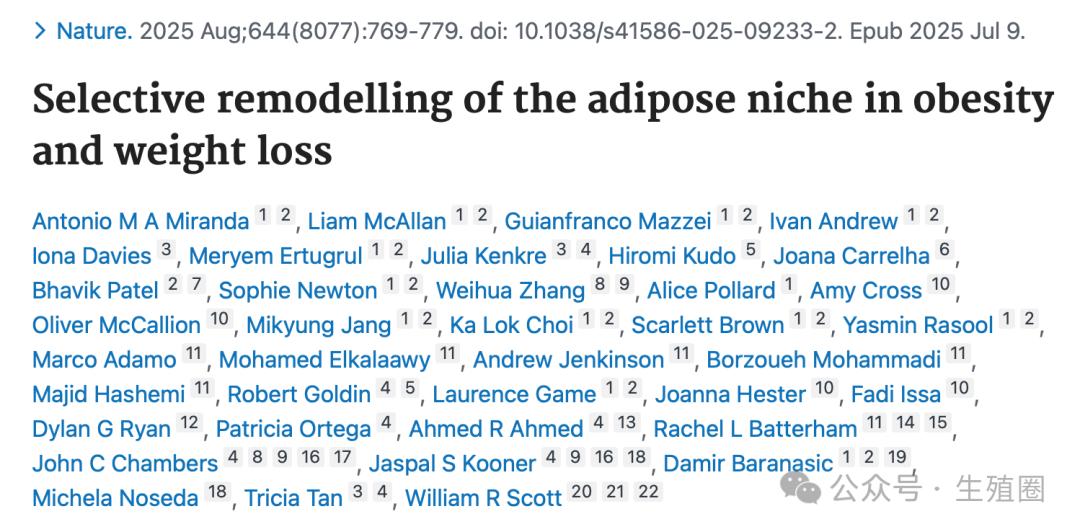 Selective remodelling of the adipose niche in obesity and weight loss. Nature. 2025 Aug;644(8077):769-779. doi: 10.1038/s41586-025-09233-2. Epub 2025 Jul 9.