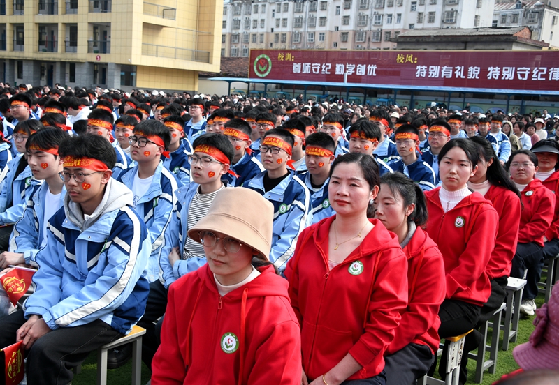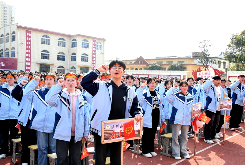 学生代表梁涵茹在发言中充分展现了九年级学子锐意进取、勇攀高峰的精神风貌,并带领全体学生庄严宣誓,以坚韧不拔的意志品质全力冲刺中考,用奋斗与汗水书写青春答卷。