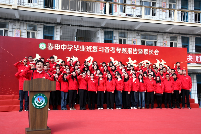 为深入落实立德树人根本任务,凝聚家校协同育人合力,激发九年级师生备考热情、坚定决胜中考的信心,3月22日下午,潢川县春申中学举行“策马春申,圆梦中考”2026届毕业班复习备考专题报告暨家长会。学校领导、九年级全体班主任及任课教师、毕业班学生与家长代表共同参与,活动由校团委书记郑泓彦主持。