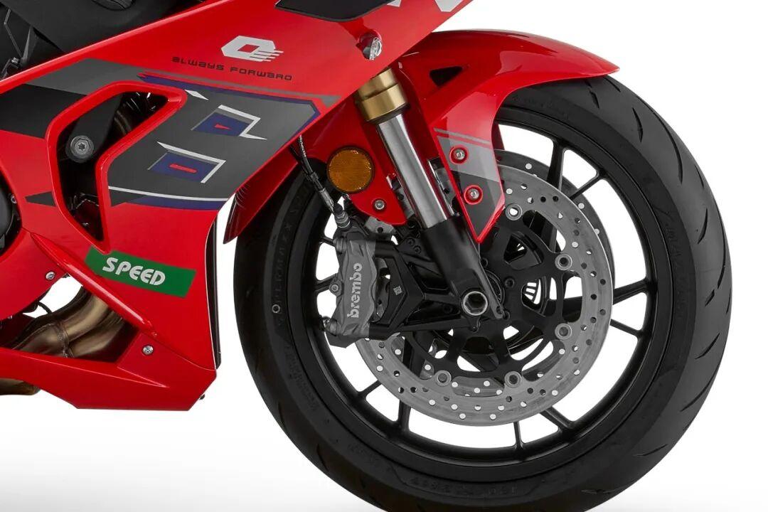 安全配置上赛800RS自然不用担心,前轮搭载Brembo对象四活塞卡钳搭配浮动双碟盘,后轮搭载Breomb“小螃蟹”搭配单固定碟盘。整车标配双通道ABS系统以及TCS牵引力控制系统,原厂标配转向阻尼器。这套下来加上减震上的出色表现,赛800RS的配置基本也是同级第一梯队的存在。