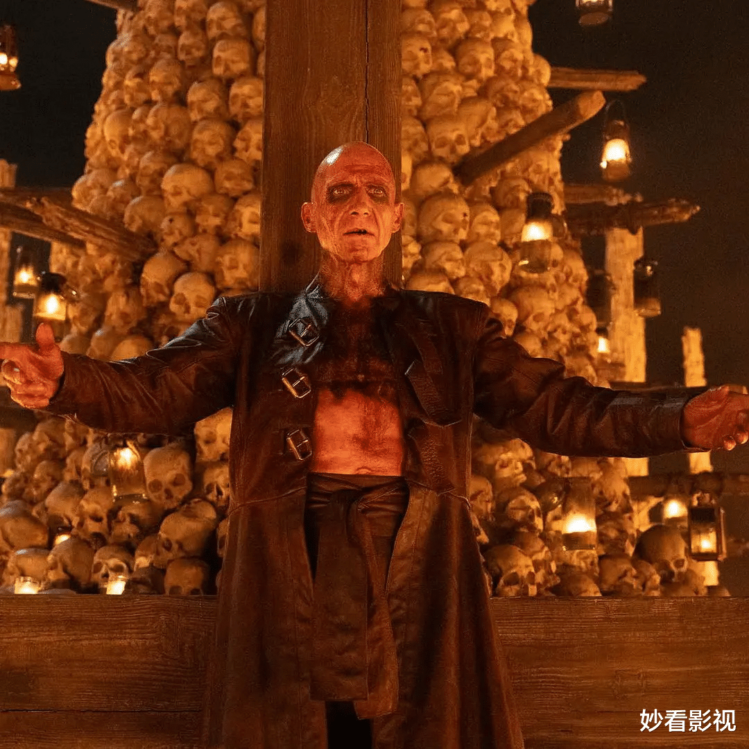 凯尔森博士则是人性光辉的体现,他的皮肤被碘酒染红,身处白骨之中,却怀揣着最纯粹的慈悲。他与参孙的互动充满诗意,两人在杜兰·杜兰的歌声中起舞,即便是怪物也未曾完全丧失人性。