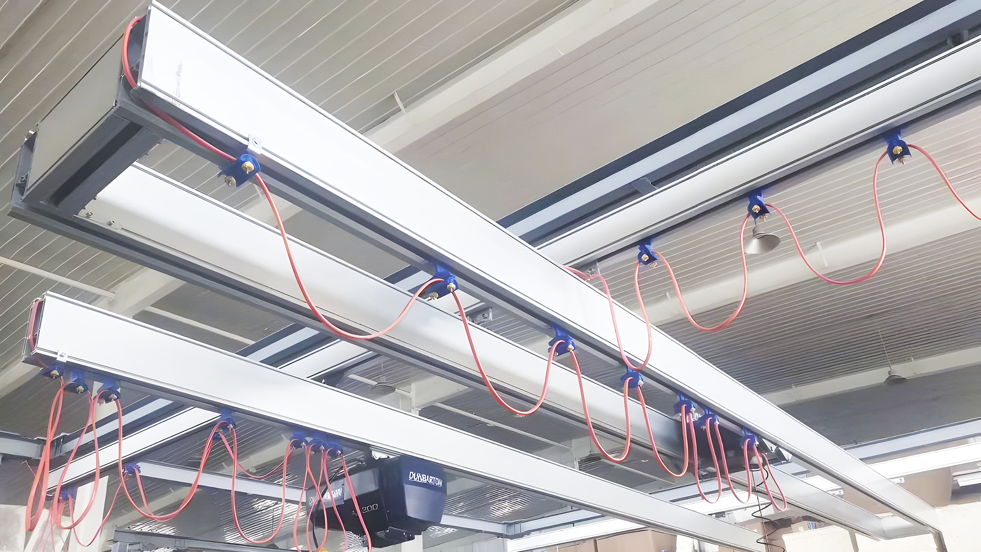 省空间不占地:采用悬挂式安装,直接固定在厂房顶部钢梁,不占用地面空间,让叉车、货架等设备正常摆放,特别适合中小型车间紧凑布局。