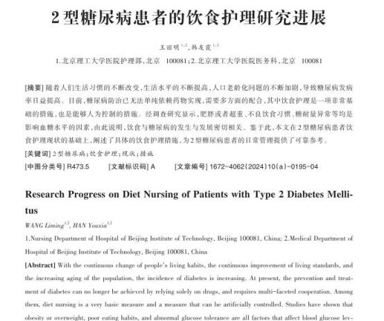 参考资料[1]王丽明,韩友霞.2型糖尿病患者的饮食护理研究进展[J].糖尿病新世界,2024,27(19):195-198.