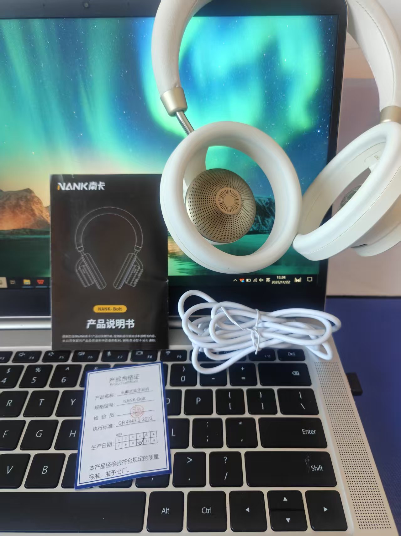 开箱:南卡Bolt开放式头戴耳机、使用说明书、合格证、数据线。