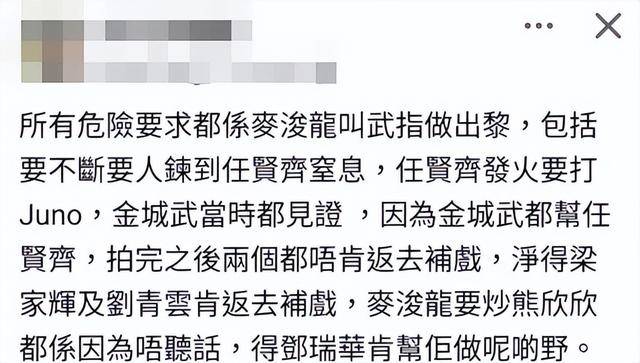 另外据目击者爆料,任贤齐与麦浚龙在现场还有一些摩擦。当时有场任贤齐窒息反应的戏份,麦浚龙要求动作指导,告知任贤齐的对手演员,不断掐任贤齐到窒息。