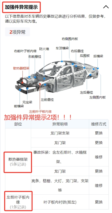 30000元以上: 高度警惕! 这个级别的维修很可能已经伤及车身结构件,如A/B/C柱、纵梁、车门防撞梁等。这类车辆即使修复,其被动安全性能也已永久性下降,属于严格意义上的“事故车”。