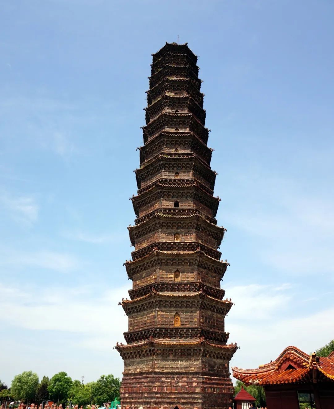 后来宋仁宗下令仿照木塔修建了铁塔。铁塔高近56米,13层、八角楼阁式。铁塔的一些特点在中国佛教建筑史上占有重要地位:设计师以许多形状大小各异的“结构砖”相组合。