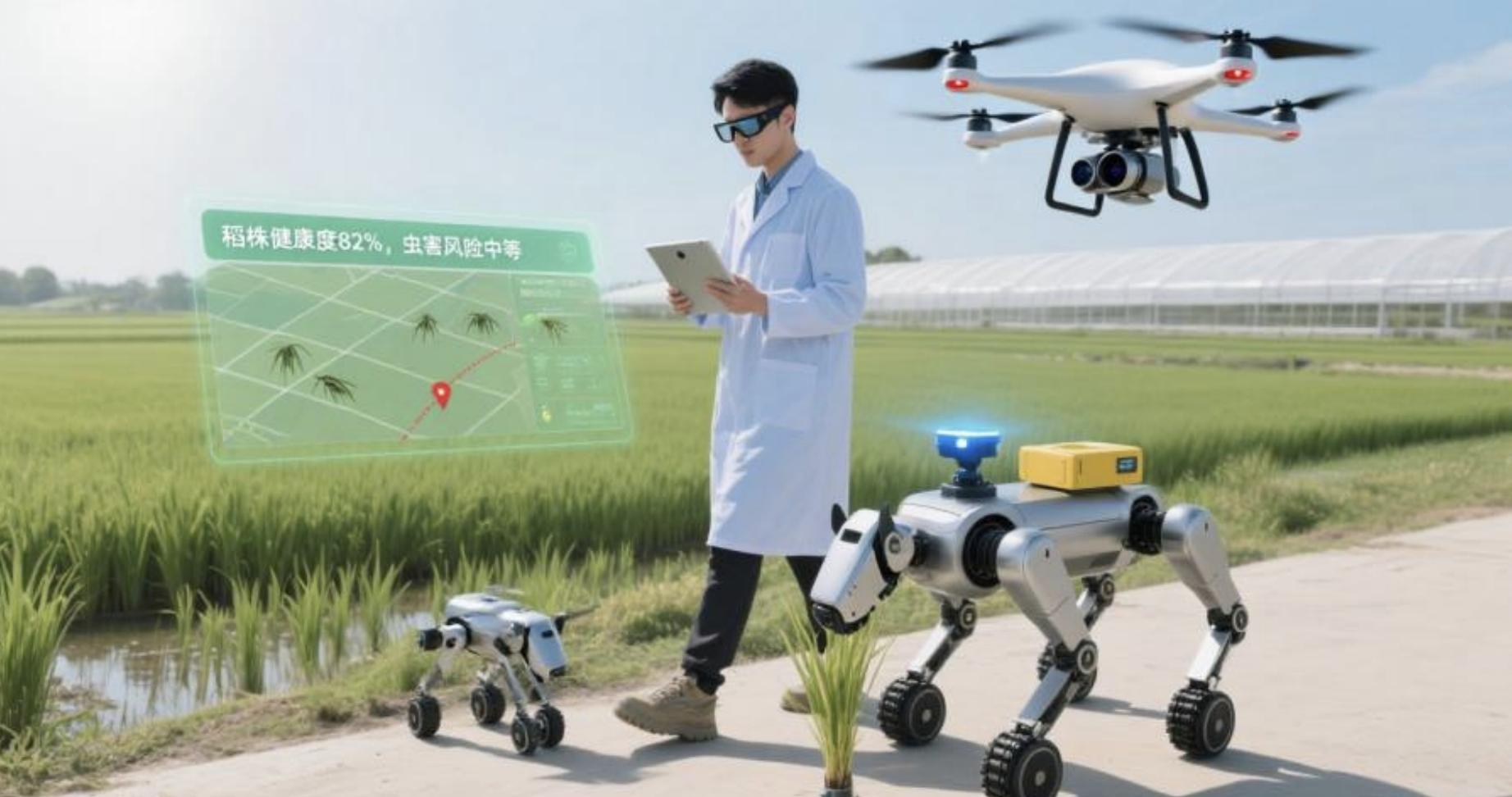 过去,提到育种,很多人脑海第一印象可能是田间地头的“泥腿子”奔波。但当下及以后的育种工作,更可以是完全现代化的工作范式——科研人员通过 VR 眼镜、无人机等前端设备获取田间信息,数据实时传入 AI 数据湖,经过 AI 分析后生成的育种决策,能直接下发给机器狗、智能农机执行,让传统“靠天吃饭、凭眼判断”的育种模式升级为精准可控的智慧育种。