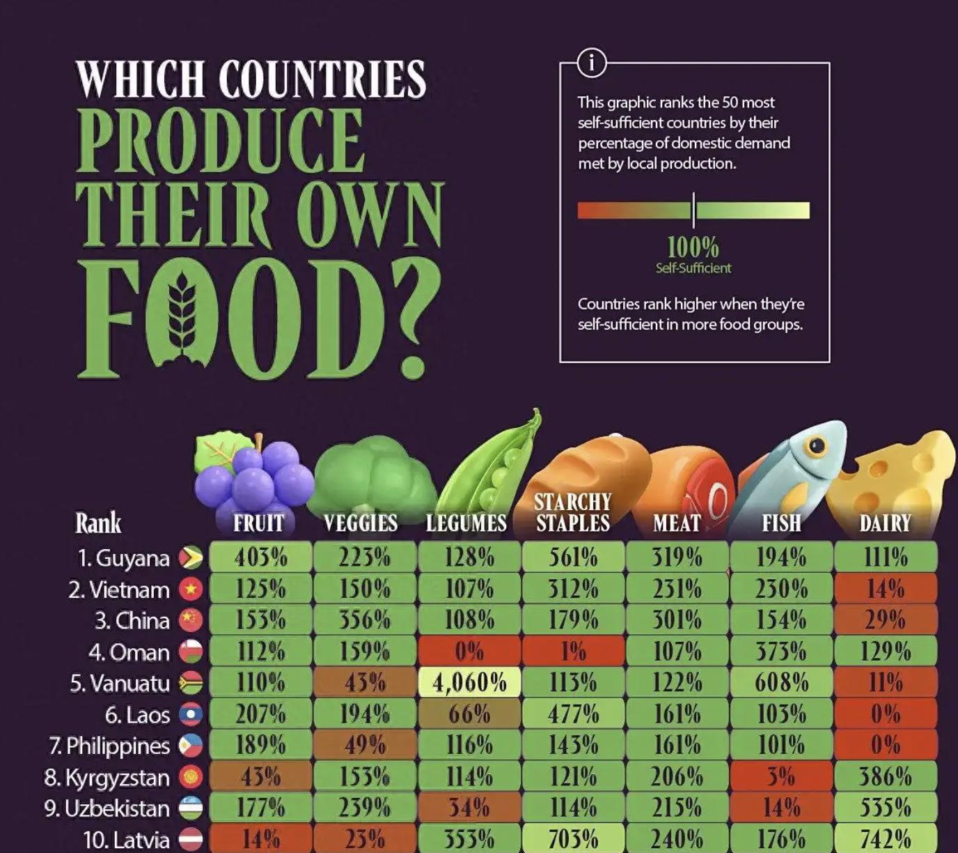 毫无疑问,在充裕的粮食自给率面前,中国老百姓早已经不用担心“饿肚子”问题。几个月前,加拿大数字媒体公司发布了一份权威的粮食自给率数据榜单,拥有14亿人口的中国已经高居全球第三。