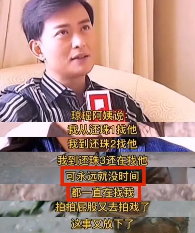 琼瑶阿姨说,“我还珠一找他,还珠二找他,还珠三找他,《情深深雨濛濛》还在找他,但他永远都说没有时间。”