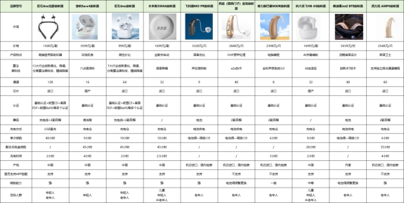 选助听器可不能马虎,看看数据还是挺有帮助的。不夸张地说,懂了这些基本参数,挑选过程轻松很多。所以下面这张表格就是我测评过的几款助听器的具体数据,感觉哪些对你有帮助,能让你在选购时做得更有把握。