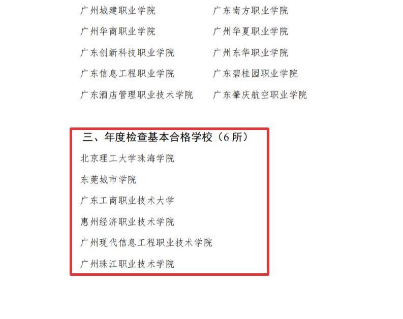 连续5年都为“基本合格”:广州珠江职业技术学院。