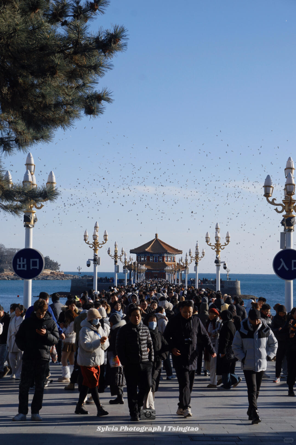 自大学路向南,海的气息愈来愈浓。那条伸向大海深处的长桥——栈桥,横陈眼前。它如一支笔直的臂膀,探入蔚蓝的怀抱。桥上永远熙熙攘攘,游客、商贩、成群飞舞的海鸥,构成一幅生动的市井画卷。