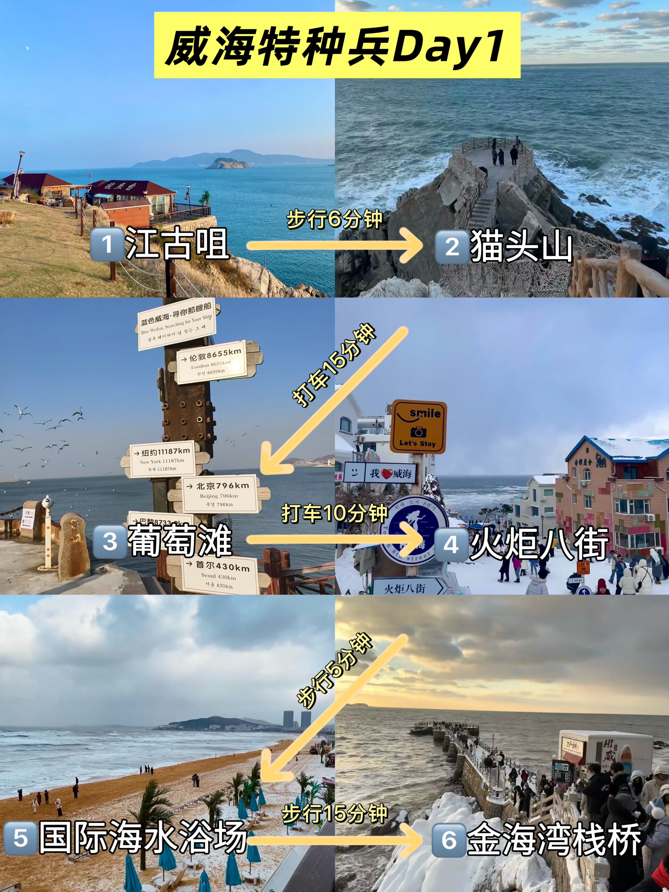 -威海没有地铁,出行主要发车或公交,景点之间距离不远,打车很快所以价格也不贵,公交就比较划算1-2r