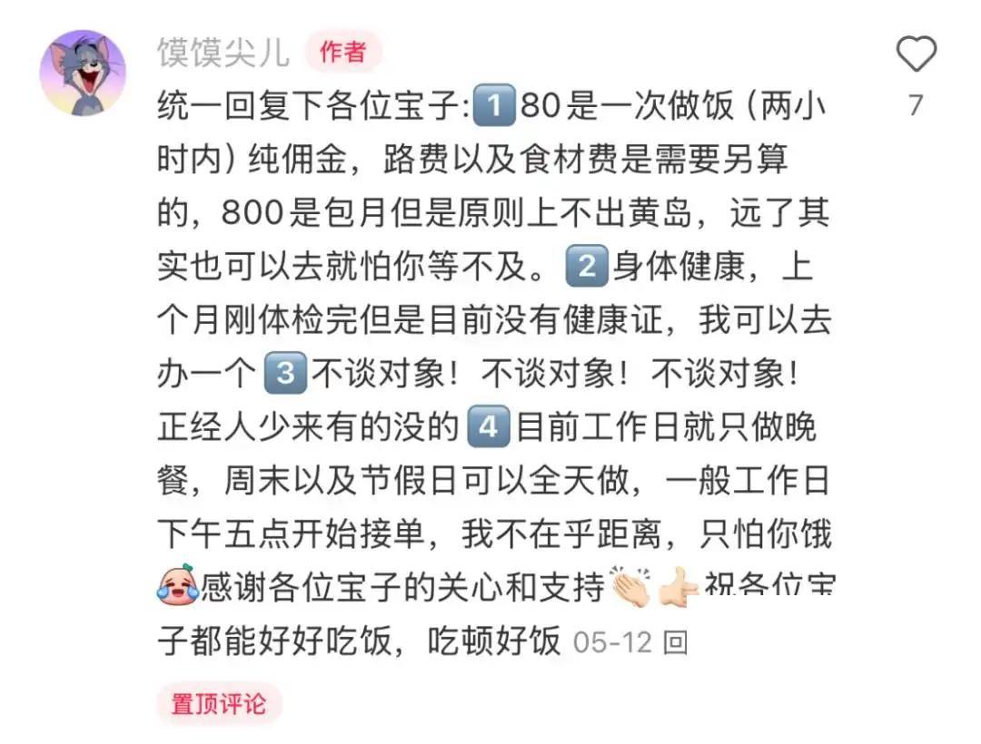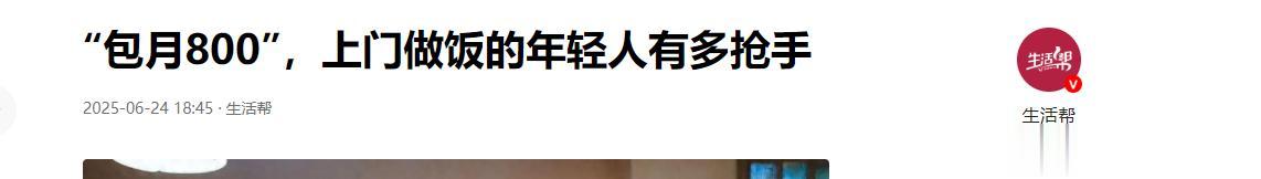 参考资料:生活帮 - 2025-06-24 :“包月800”,上门做饭的年轻人有多抢手