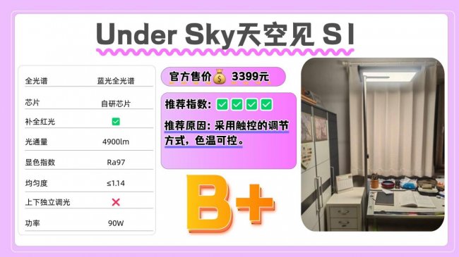 推荐款:Under Sky天空见 S1——采用触控的调节方式,色温可控。
