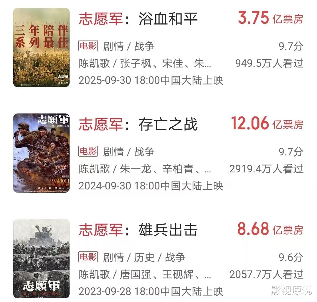 不过很可惜,《志愿军3》的口碑确实还不错,为系列最佳,但票房或成系列最低。