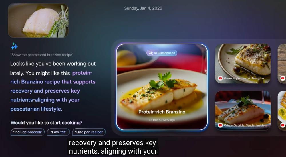 VAC还能提升各类节目的整体生活体验。用户仅需询问即可获取电视节目中美食的食谱,VAC还能基于最新信息推荐符合健康与健身目标的方案。
