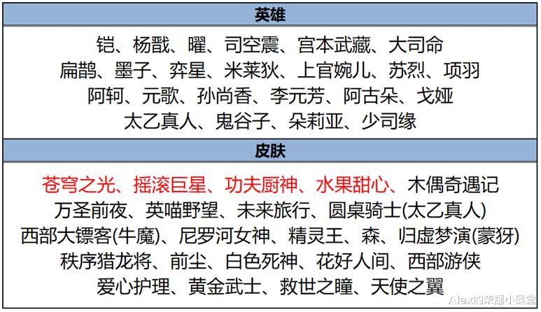 皮肤碎片商店,加入了项羽-苍穹之光、嬴政-摇滚巨星、程咬金-功夫厨神和孙尚香-水果甜心等皮肤。