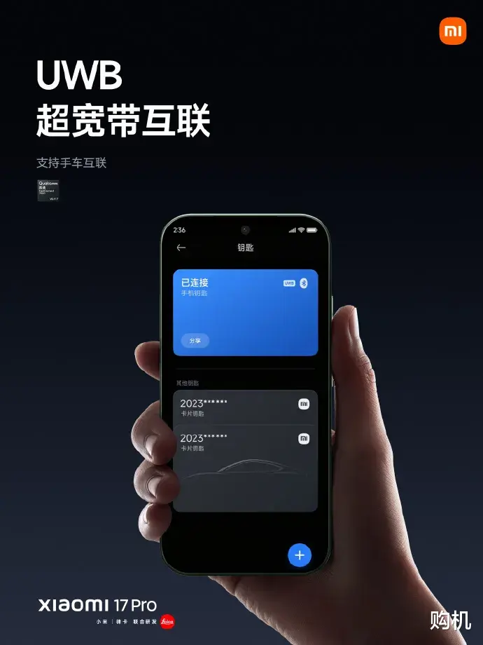 #小米17Pro 小尺寸旗舰,内置6300mAh电池含量,机身薄至8mm,机长倾向于推荐这款。小米17 Pro系列搭载UWB超宽带互联技术,能精准判断距离、方向,自动识别车主位置。