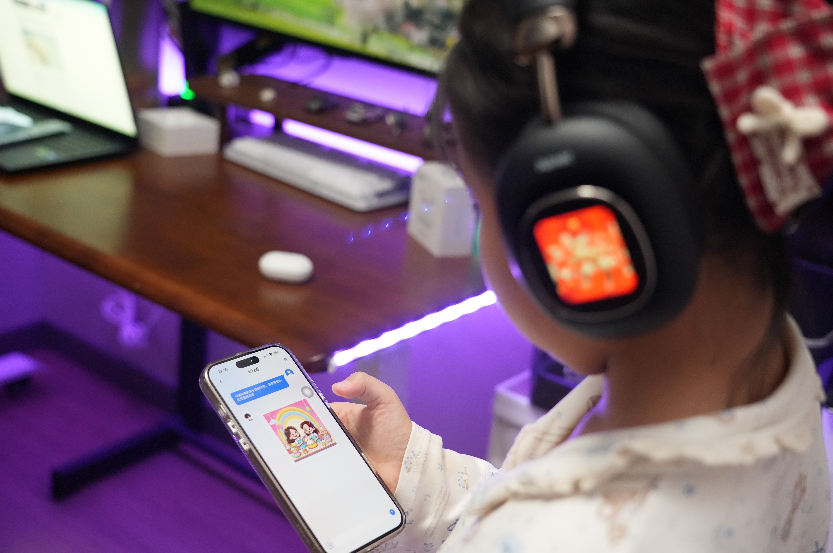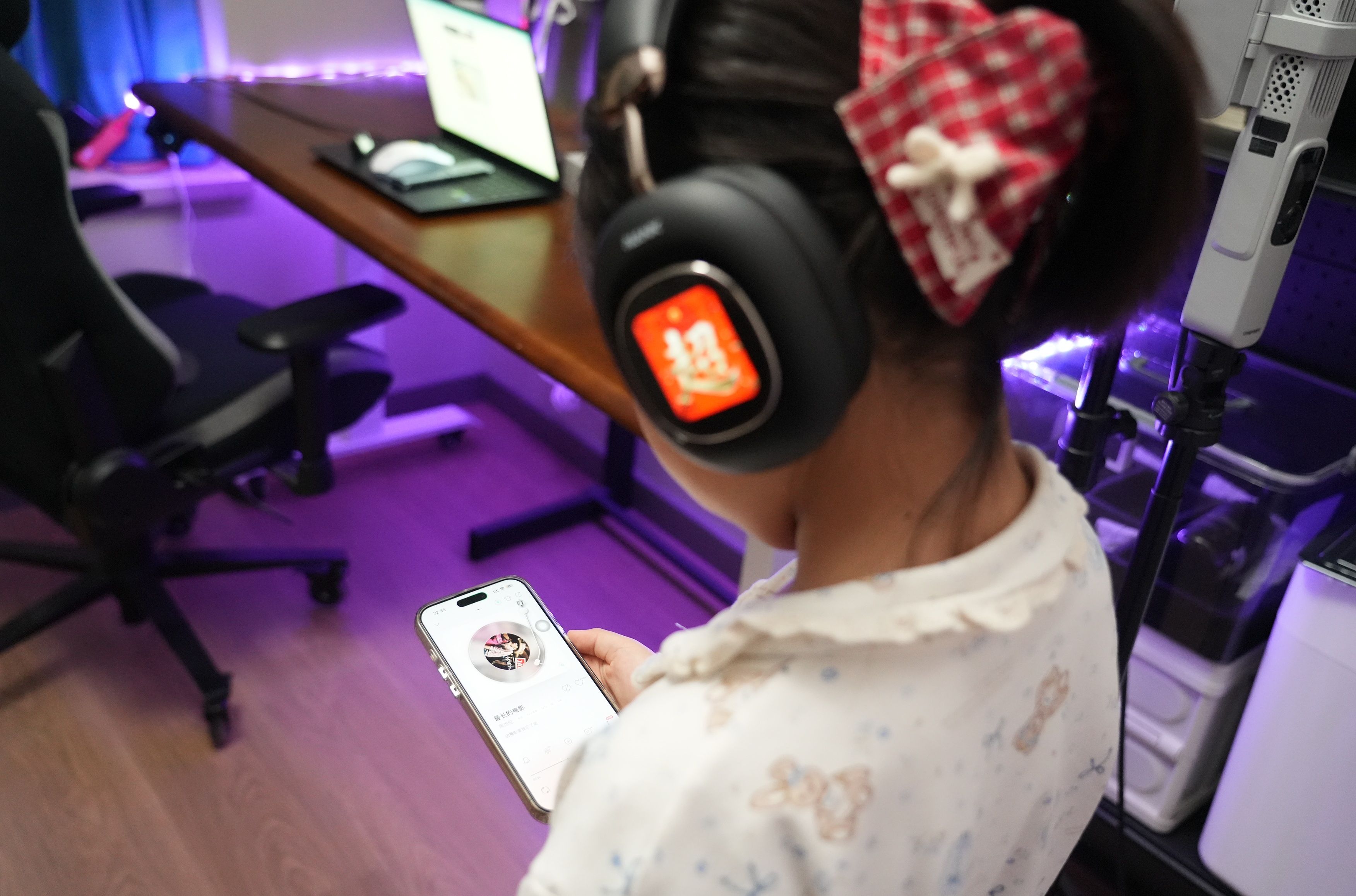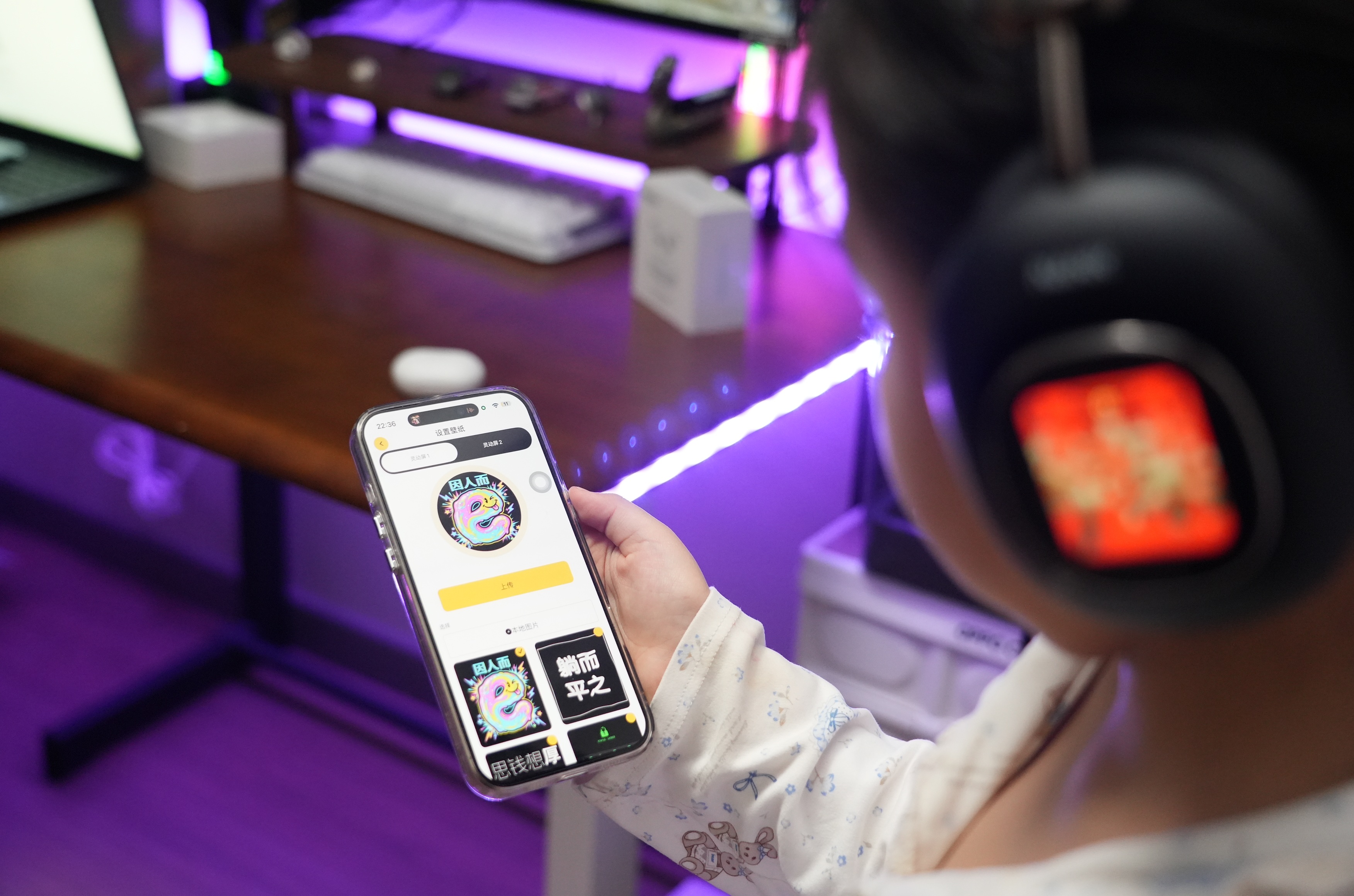 最让我上头的,是它的遥控器功能。有一次瘫沙发上刷剧,手机放桌上充电懒得动,想暂停、调音量,抬手在耳机屏上一划就搞定,那种一切尽在掌控的感觉确实不错。还有拍照遥控器,出去玩把手机放远处,耳机屏直接变身取景器和快门,对着镜头摆pose,比倒计时方便多了。配合App还能换壁纸,玩出自己的花样。