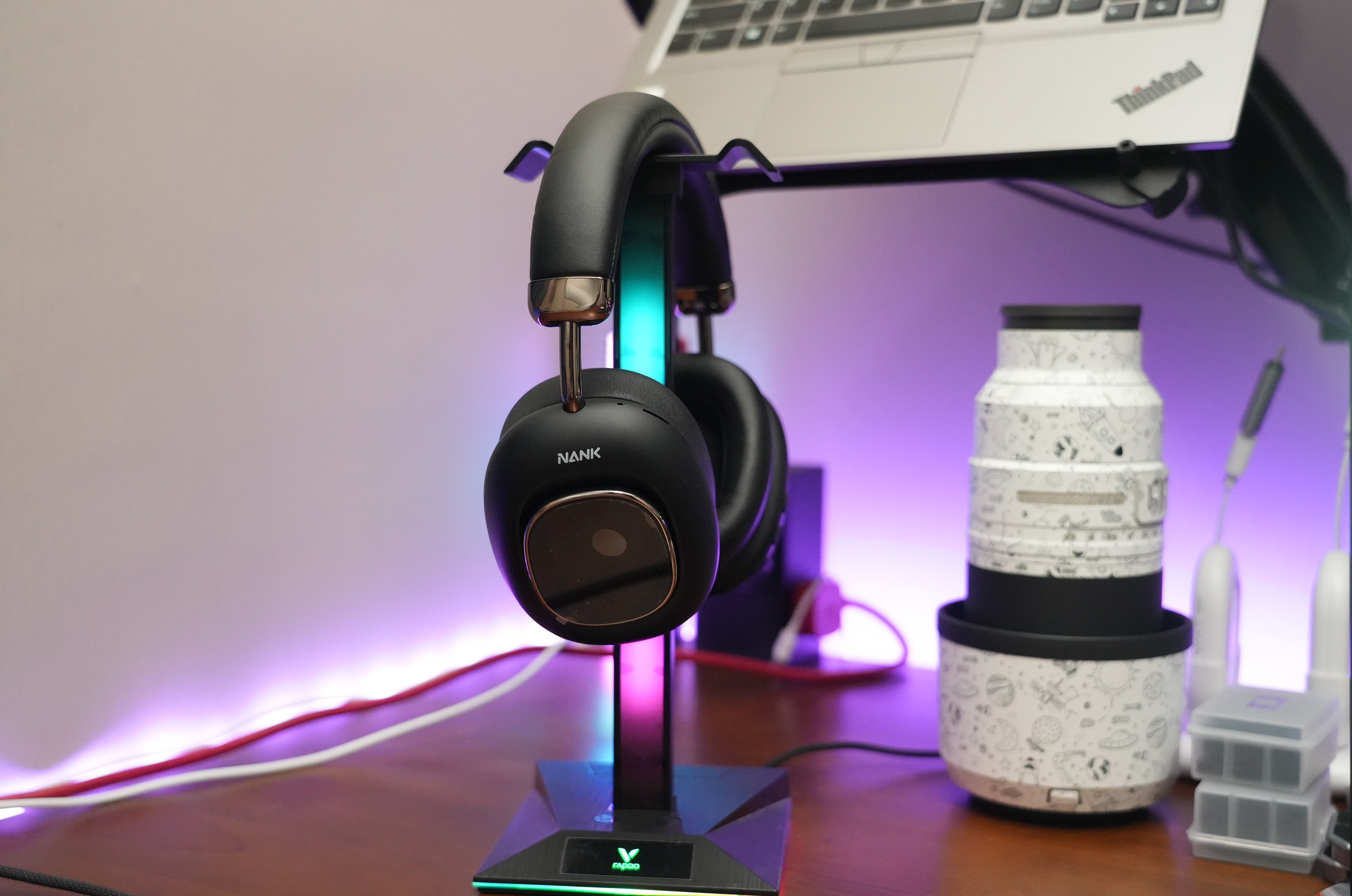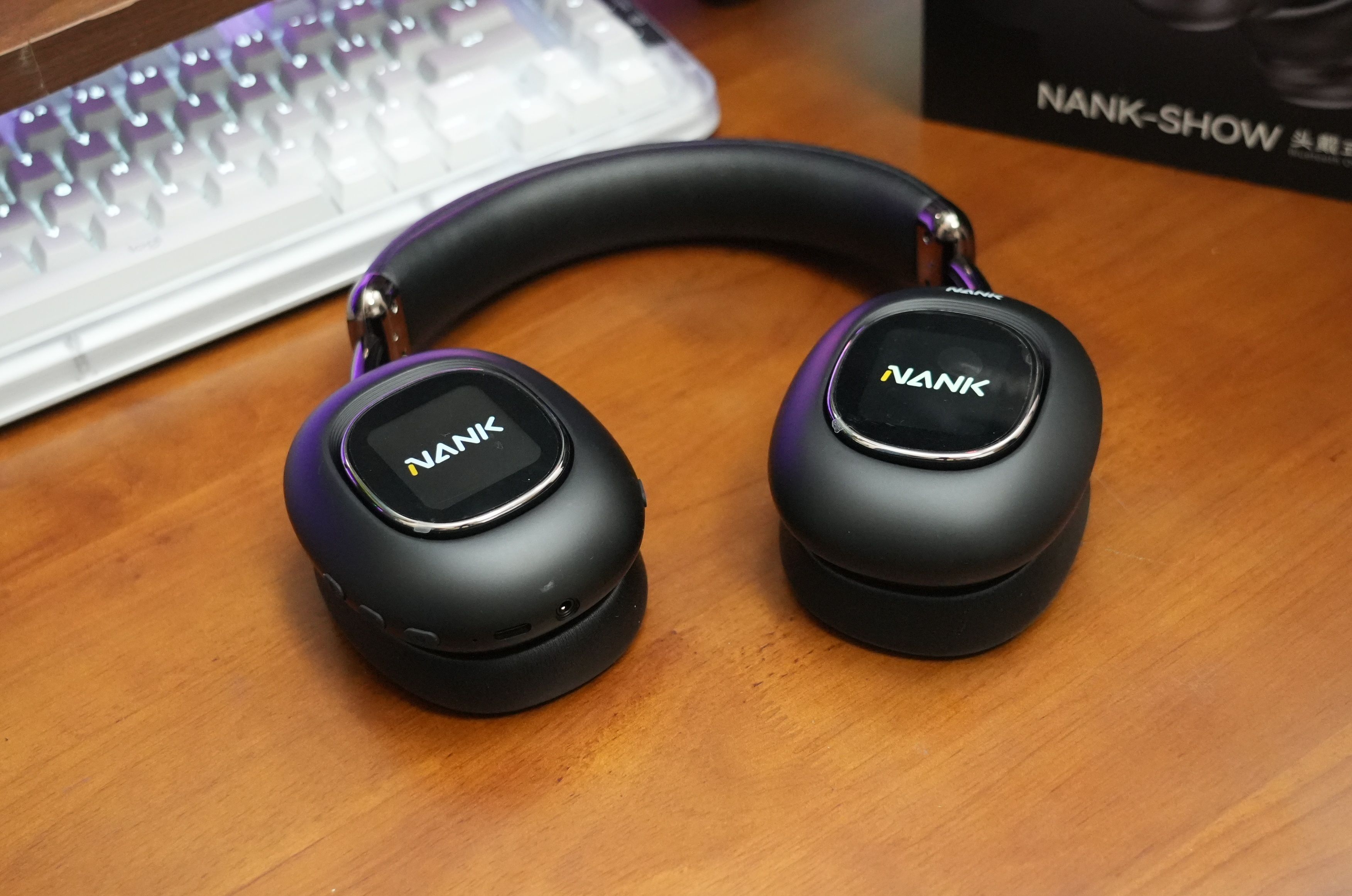 屏幕虽好玩,但耳机毕竟是戴头上的,不舒服就完蛋。这点南卡做得挺到位。耳罩是包耳式,能把整个耳朵包进去,记忆海绵很软,像贴在耳朵上。头梁的金属骨架伸缩顺滑,对我这种大头人士很友好,戴一下午没觉得夹头或压得慌。外面是亲肤的皮质材料,摸着舒服,挂脖子上也不会硌得慌。
