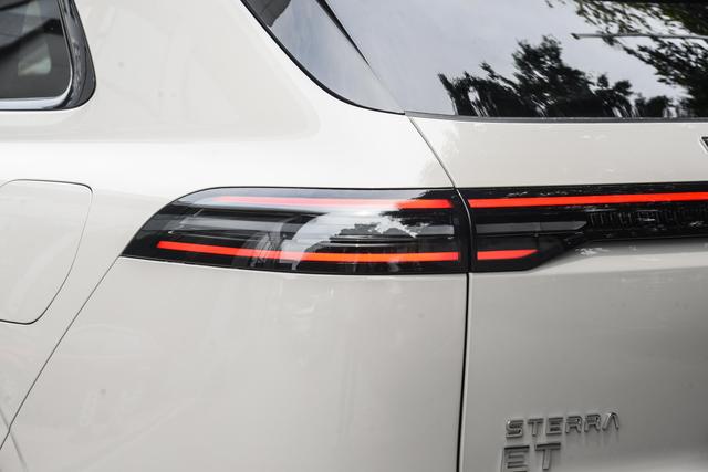 星纪元 ET 的造型设计呈现出与传统中大型 SUV 不同的思路。车头部分取消了传统的进气格栅,采用平滑的封闭式设计,一条细长的灯带横贯其上,中央镶嵌的可点亮品牌标识在夜间提供了较好的车辆识别特征。车身侧面,隐藏式的门把手和平缓下滑的车顶线条,不仅是为了优化空气动力学表现,也营造出一种接近轿跑 SUV 的视觉效果。在传感器布局方面,车辆将硬件进行了整合:一枚 126 线激光雷达安装在前保险杠中部,周围还布置了 5 颗毫米波雷达和 12 颗超声波雷达,配合分布在车身各处的 12 个摄像头,这些摄像头通过曲面造型贴合车身。这种集成方式使得各类传感器不至于过分突出,保持了车身设计的整体感,同时也为智能驾驶系统提供了环境感知的基础。实际应用中,激光雷达理论上每秒可生成 150 万点云数据,有助于在雨雾天气或夜间等光线不佳的条件下,识别前方最远约 200 米处的行人和车辆目标。
