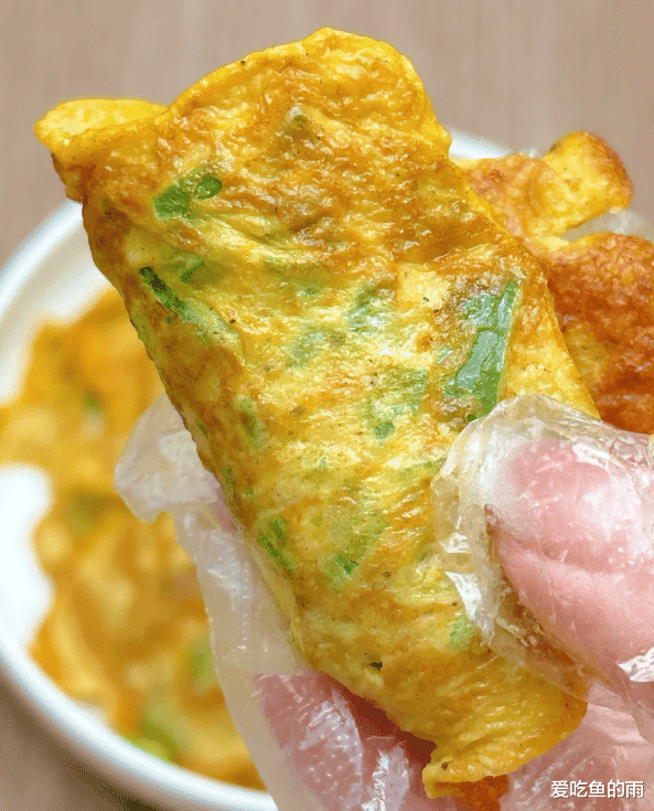 趁热吃最是享受!外层微韧带香,内里却柔软湿润,青椒的脆爽在舌尖轻跳,鸡蛋的滑嫩温柔托底,整体咸鲜适口、毫无油腻感。配一杯无糖豆浆、一碗蔬菜汤,就是一顿干净又踏实的轻食早餐;当晚餐主食也毫无负担。