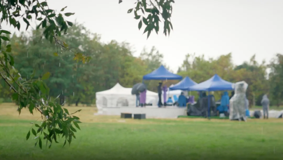 竞演当天,一场意外悄然降临。原本晴朗的阿拉木图突遇寒潮,雨势渐强,室外舞台的竞演面临重重考验——彩排被迫中断,恶劣的天气让歌手们承受着巨大的压力。为保证演出效果与现场安全,节目组最终做出竞演延后的决定。消息传来,场外候场的一百位星赏团不离不弃,选择在寒风中坚守等候。