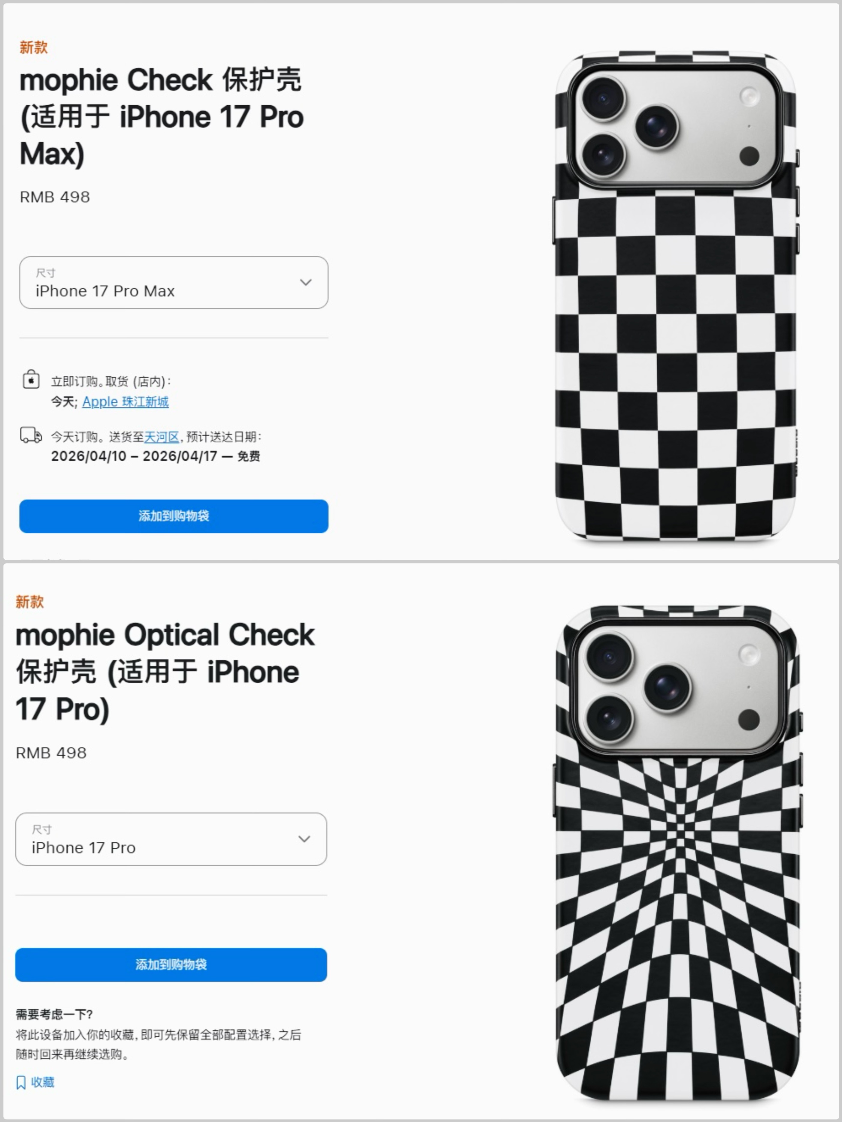 据苹果官网显示,上述两款保护壳均兼容iPhone 17系列(不含iPhone 17e)和iPhone Air。但库存似乎不太充足,发货周期都较为漫长,现在下单的话,至少得等上两个星期,送达时间最快要到4月10日。