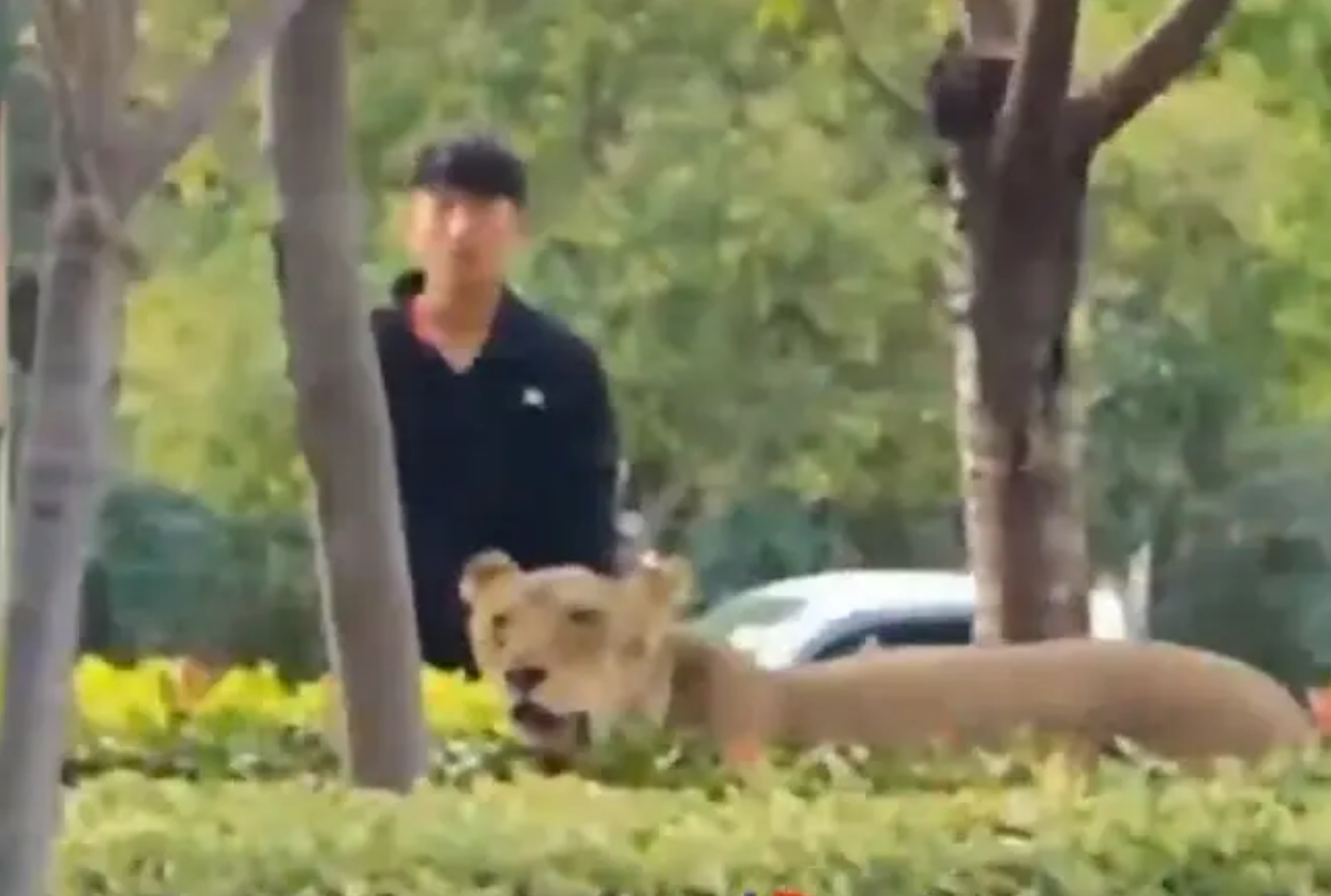 近日,一段"狮子在绿化带狂奔"的视频引发关注。画面显示,在安徽砀山县砀郡路一带,多名男子手持铁锹等工具,正在围堵一只在道路中央绿化带中奔跑的狮子。