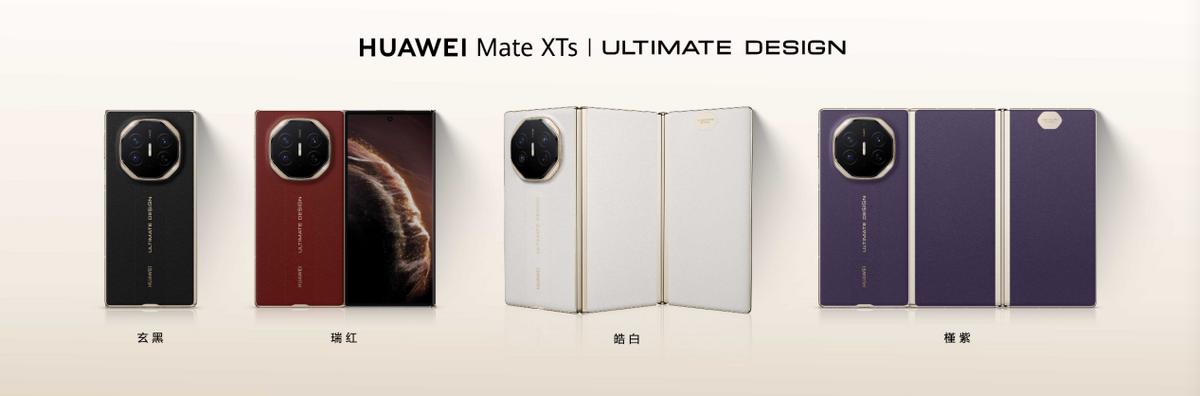 除了内在美的升级,外在的视觉体验上,此次新款三折叠华为Mate XTs 非凡大师还提供槿紫、皓白、玄黑和瑞红等四款配色,镜头模组等细节处缀以沙金色岩脉纹理升级,尽显高端质感。此次发布,不仅见证了华为在三折叠形态技术上的持续领先,更通过M-Pen 3手写笔与三折叠大屏的完美融合,为移动生产力树立了新的标杆。