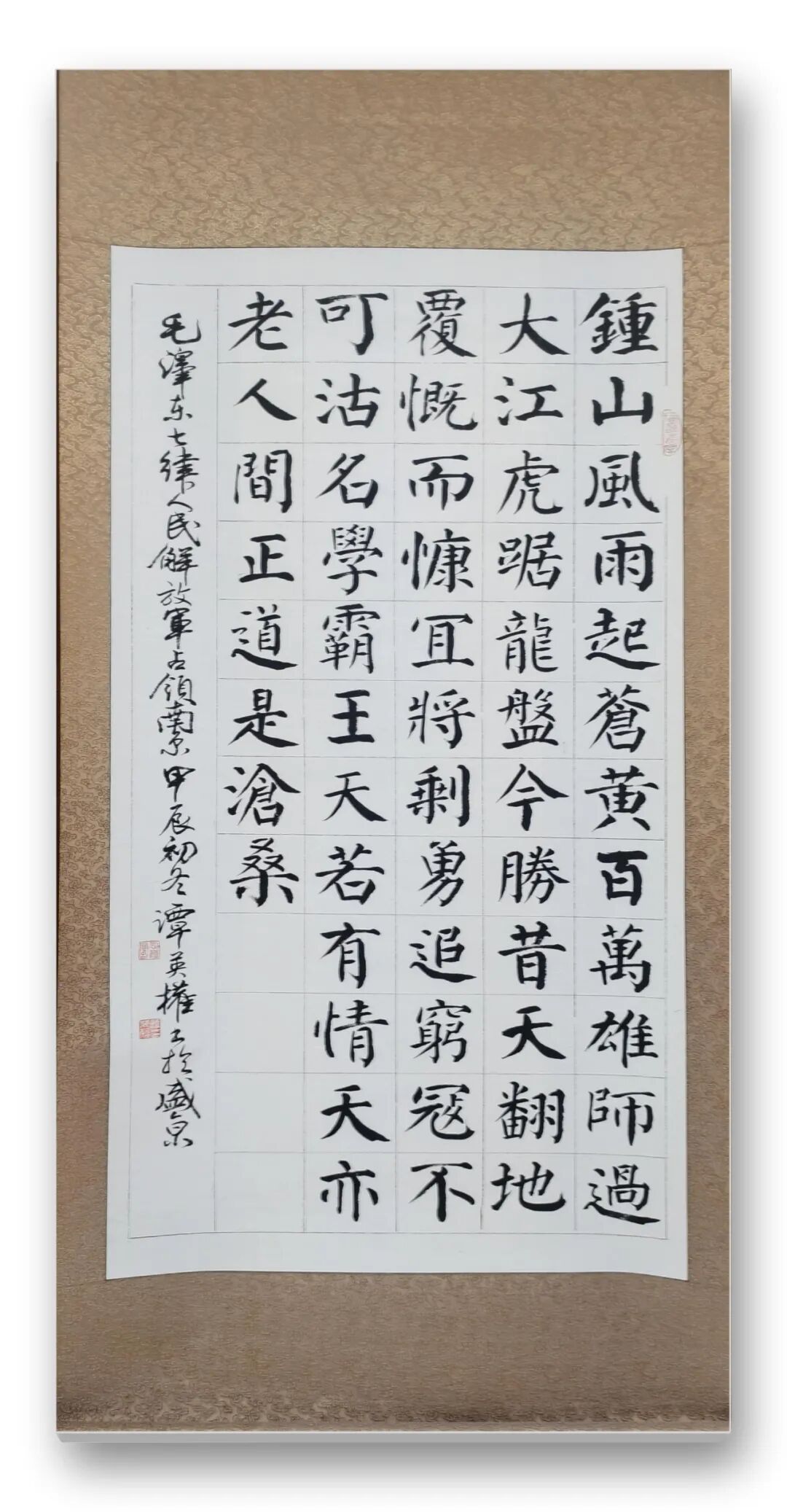 书法即人书,字品即人品。谭英权先生的作品,始终透着一股温润谦和却又坚韧不拔的气韵,这正是他人格修养的真实写照。他淡泊名利,潜心艺事,将对生活的热爱、对文化的敬畏、对时代的感悟,都倾注于笔墨之间。观其作品,既能感受到传统书法的千年文脉,如见秦汉风骨、晋唐神韵;又能捕捉到当代审美的时代气息,线条的张力、章法的布局,都透着与时俱进的创新意识。他不困于古人窠臼,而是在深入理解传统的基础上,赋予笔墨新的生命力,让古老的书法艺术在当代焕发出别样光彩。
