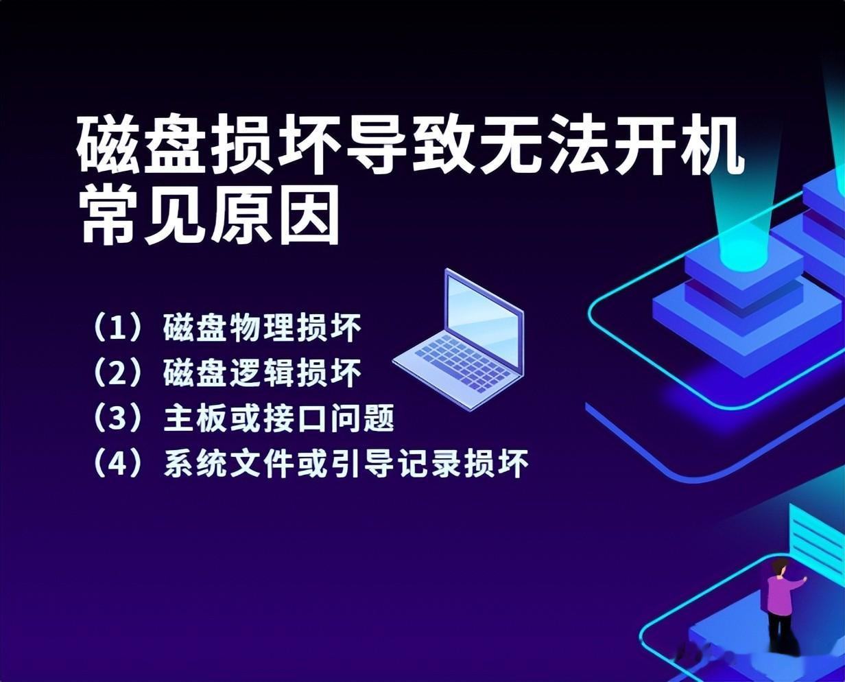 磁盘损坏导致无法开机的常见原因电脑开不了机,首先需要弄清楚问题究竟出在哪里。磁盘损坏大致分为以下几类: